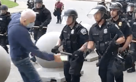À l'extérieur de Buffalo Court, une foule massive sans masque soutient 2 policiers faisant face à des accusations criminelles pour voies de fait contre un militant de la justice sociale âgé de 75 ans: REGARDER6 juin 2020
