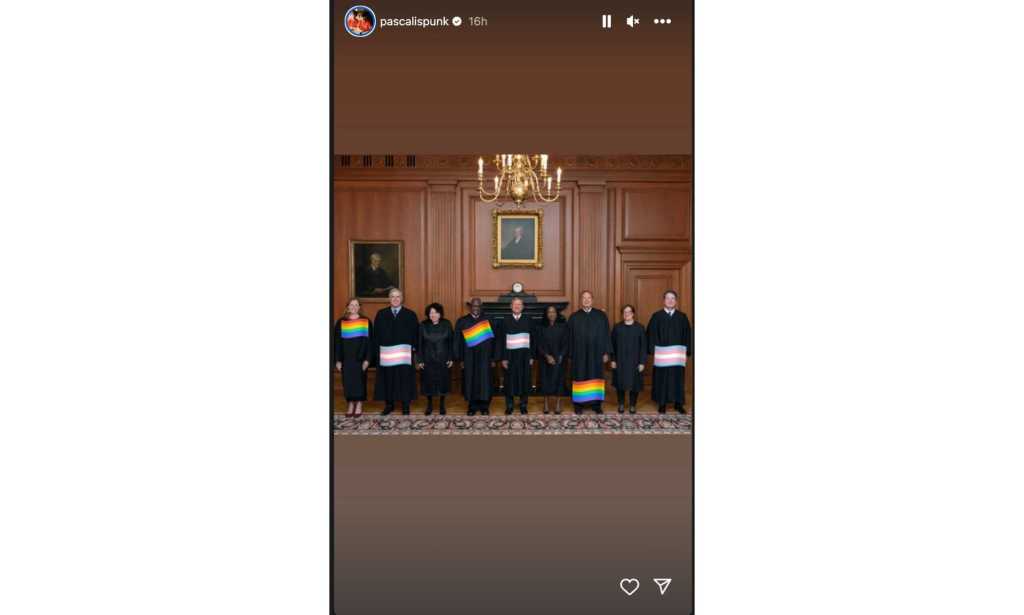 Pesant sur le sujet, Le dernier d’entre nous star et fidèle allié LGBTQ +, Pascal a partagé une image des juges de la Cour suprême sur son histoire Instagram, avec des drapeaux trans et Pride placés sur ceux qui ont voté en faveur de Smith.