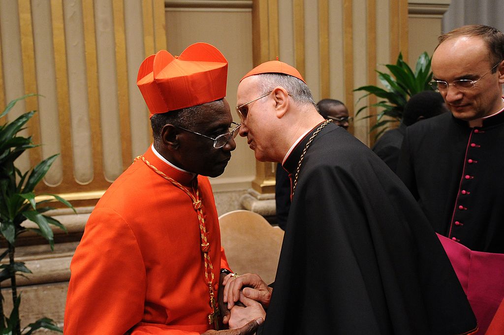 Le cardinal nouvellement nommé, Guinéan Robert Sarah (L), accueille les visiteurs lors de la visite de courtoisie traditionnelle après le consistoire le 20 novembre 2010 au Vatican. (Alberto Pizzoli / AFP via Getty Images)