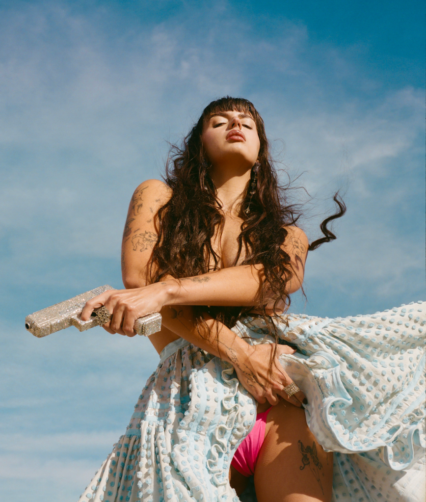 Nous parlons deux jours après les Grammys, où Lady Gaga a créé son clip typiquement en train de montrer le clip «Abracadabra» – qui restera sans aucun doute dans les mémoires comme un meilleur an. «C'est vraiment frustrant en tant qu'artiste pour les étiquettes ou quiconque à aller,« OK, alors faites-le, mais avec 0 $ ». C'est comme, la pression qui crée est parfois nauséeuse, je pense. C'est là que la chose sous-estimée devient… moins amusante. » Elle rit. «Je vais le faire quand même!»
