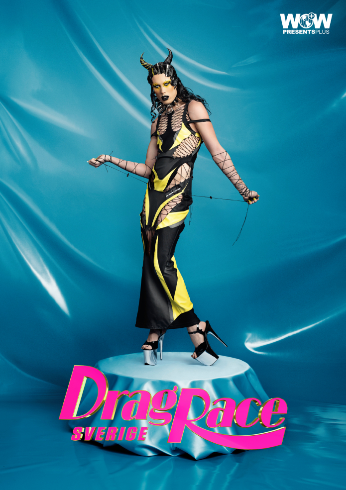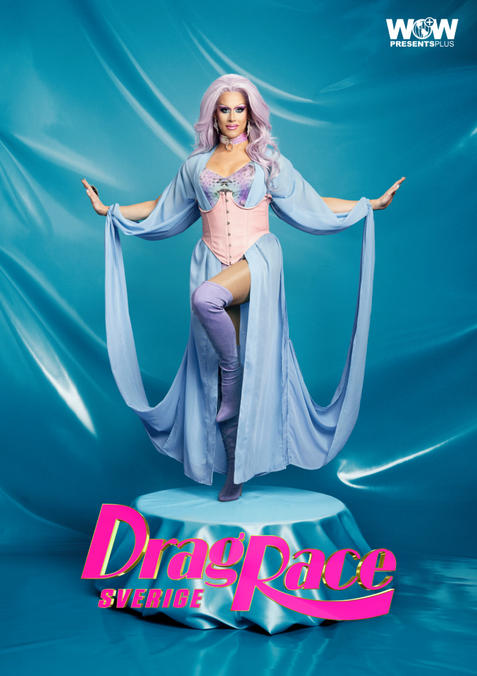 « Le caméléon tout en courbes du Norrland est revenu de Grande-Bretagne pour participer à la Drag Race suédoise. Maintenant, elle est prête à montrer à la Suède et au monde sa joie, son humour et son style de drag délicieusement tentaculaire.