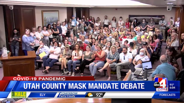 La réunion de la Commission du comté d'Utah à Provo a finalement été reportée parce que la foule n'était pas en conformité avec les directives de distanciation sociale. Des membres de la foule debout ne retireraient que des bandes adhésives pour renforcer la distanciation sociale, et presque aucun ne portait de masque.