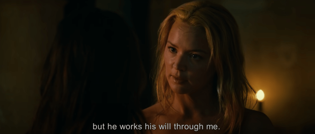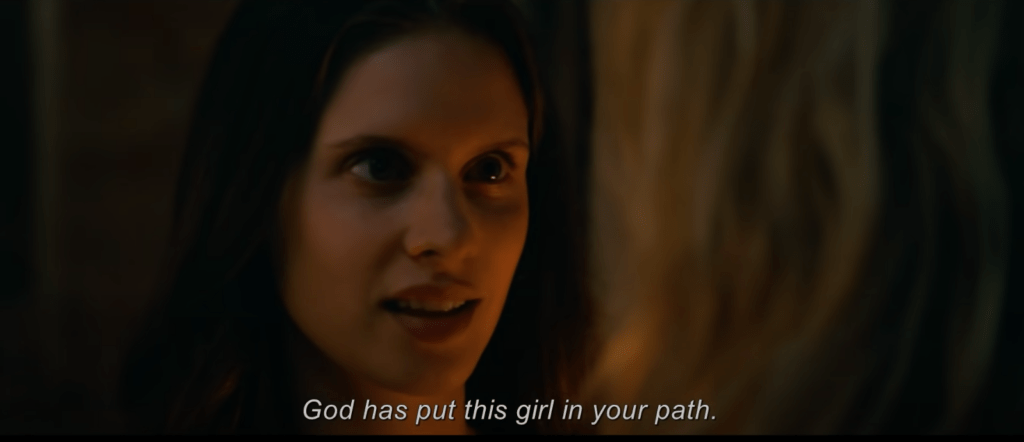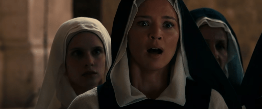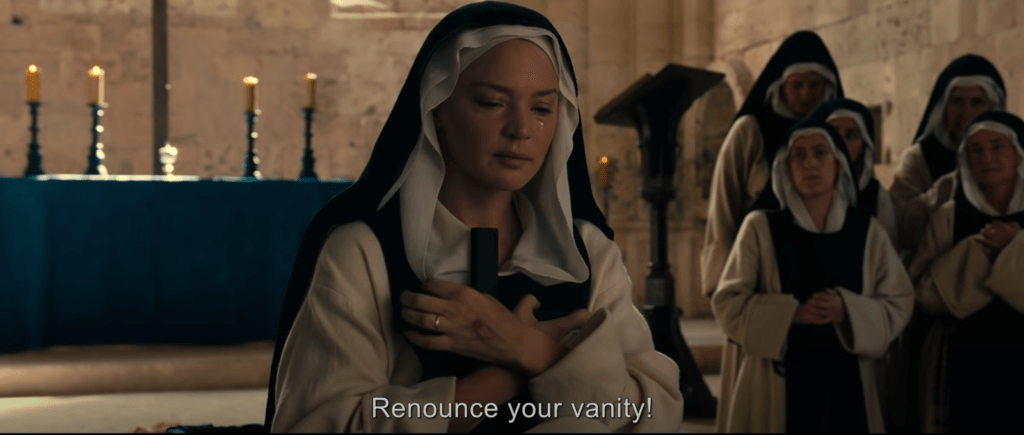 Leur lien émotionnel est renforcé lorsque Bartolomea confie à Benedetta que les ecchymoses sur son corps proviennent de son père, qui « l’a prise comme épouse » à la mort de sa mère. La dynamique entre Benedetta et Bartolomea rappelle définitivement Jésus et Marie-Madeleine. La culpabilité d’être lesbienne ne l’emporte pas sur le film, ce qui était surprenant et soulageant. Le couple est assez confiant dans son amour… pour la plupart.