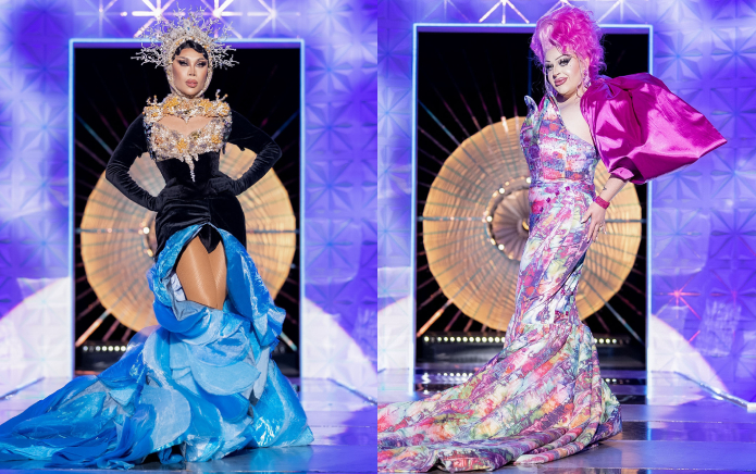 Sans perdre de temps, les quatre reines finales sont retournées sur la scène principale pour présenter leurs superbes ensembles Finale Eleganza Extravaganza.