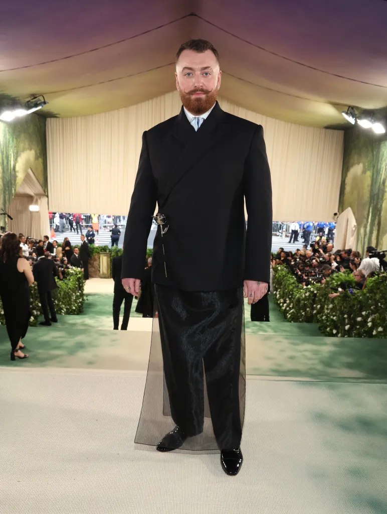 Cependant, le chanteur de « Unholy » a fait un choix de mode particulièrement épuré dans le costume coordonné au Met Gala 2024, Cowan ayant conçu le smoking crème pour lui-même et la version noire pour Smith qui arborait une jupe en mousseline transparente.