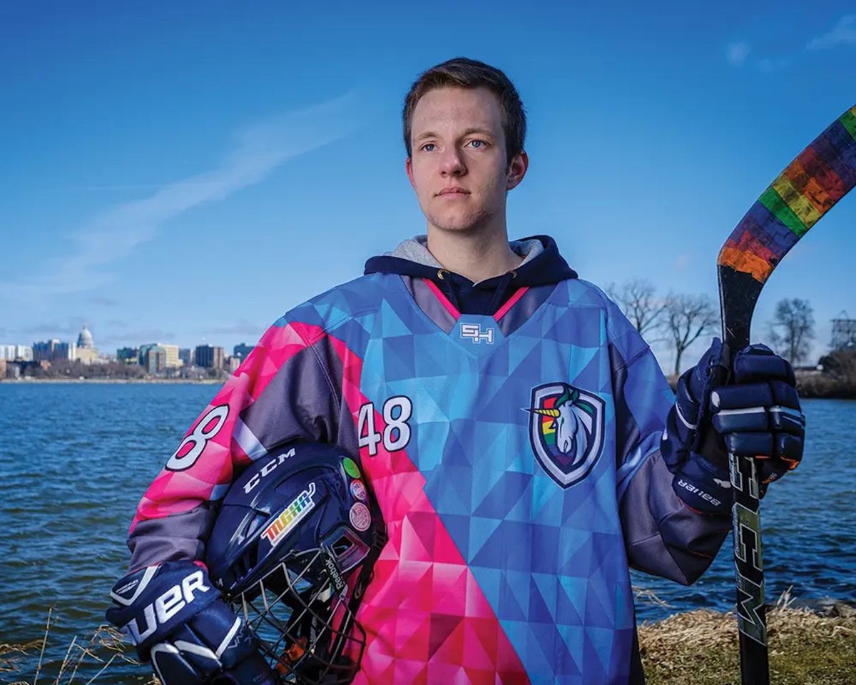 Capitaine de leur équipe de hockey de club au Macalester College dans le Minnesota avant la transition, Cordingley, qui joue au centre de Team Trans, voit le hockey comme un moyen d’exprimer son identité non binaire et, en même temps, de ne pas y penser.