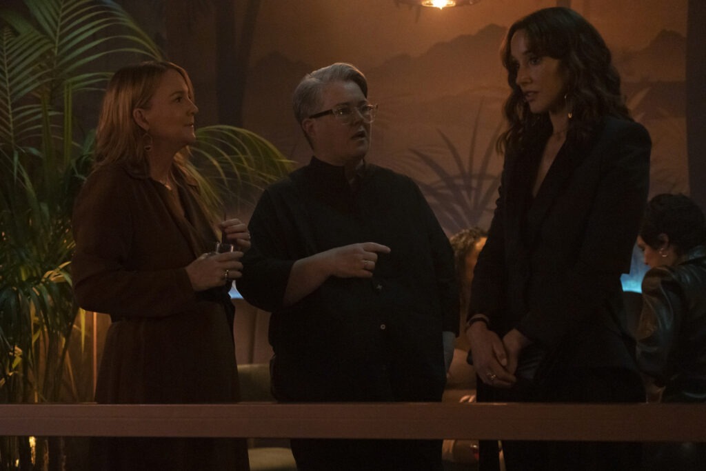 Bette et Tina sont laissées seules à la fête, alors que Carrie va boire un verre. Bette ne perd pas de temps à demander à Tina pourquoi elle a demandé si Bette est toujours amoureuse d’elle. Carrie interrompt juste au moment où Bette va admettre qu’elle veut réessayer avec Tina. Carrie panique et Tina dit qu’elle ne s’attend pas à ce que Carrie soit à la hauteur de Bette. Ouf. D’un seul coup, Carrie l’appelle – elle ne peut plus le faire, Tina blâme Bette et la réprimande et sort, et nous nous tournons vers Pippa qui dit alors à juste titre à Bette qu’elle le savait et part.