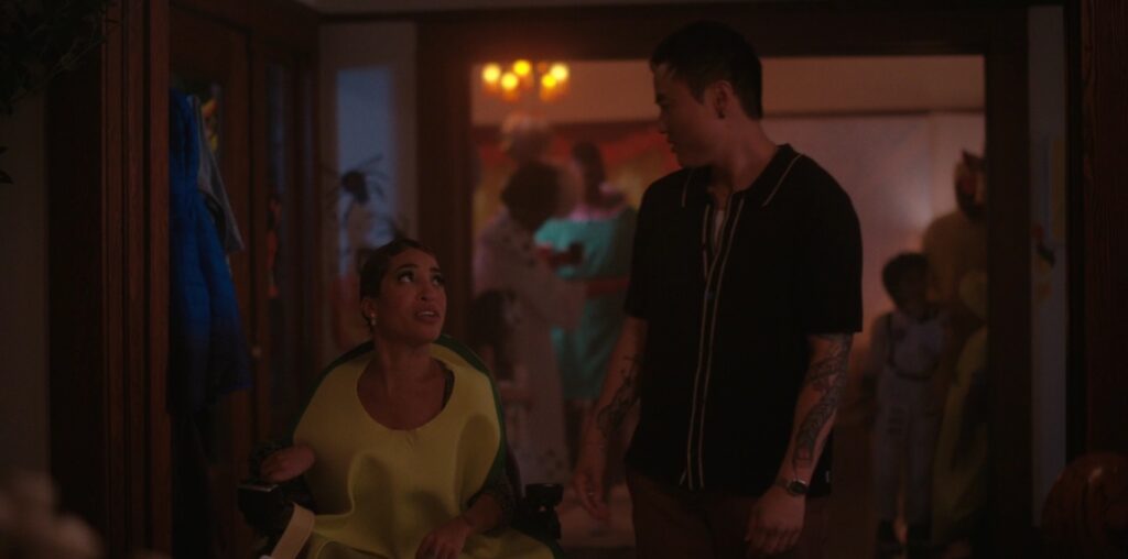 Si vous pensiez que l’épisode quatre se détendrait un instant, la blague est sur vous (et moi parce que FUDGE, c’est tellement extra.) Mirabel et Micah vont à une fête d’Halloween chez un collègue/ami. C’est parti : ce couple est un homme et une femme trans qui s’identifient en utilisant un langage et un fantasme inventés tout en élevant quatre enfants innocents. Micah a les yeux de biche parce que se faire des amis avec d’autres parents qui créent sa propre réalité est apparemment un nouveau rêve de Micah. Fait amusant : Max de la série originale The L Word fait partie de cette mascarade.