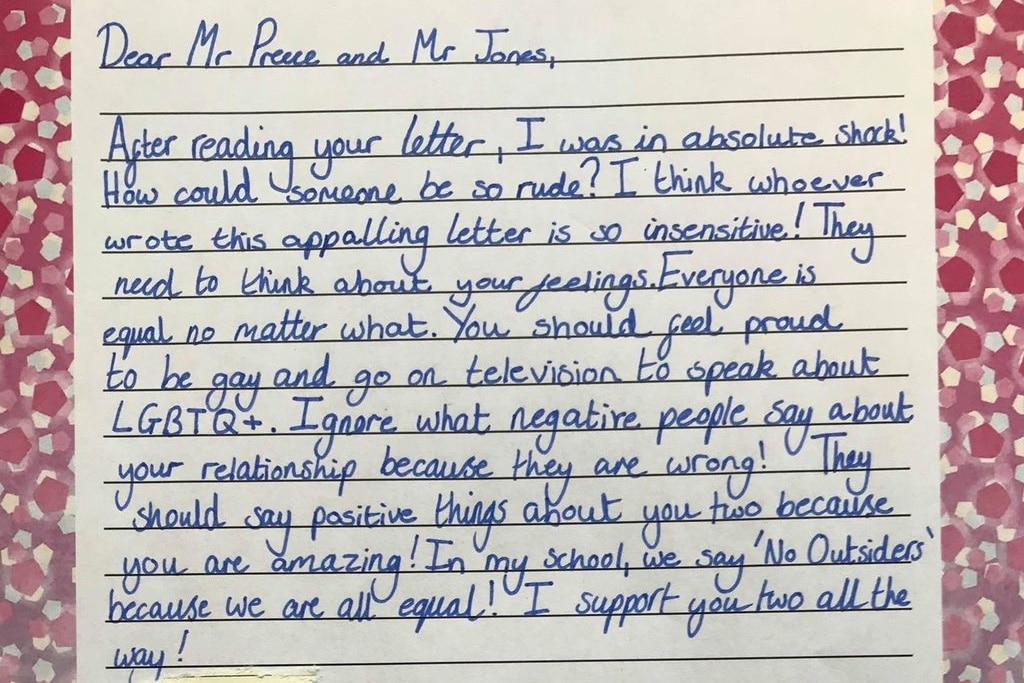 Un enfant de neuf ans a écrit une lettre adorable et réconfortante à un homme gay qui a reçu un vil courrier haineux homophobe après être passé à la télévision avec son mari.