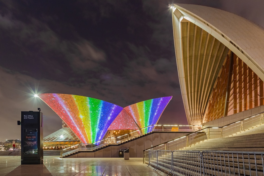 L’Opéra de Sydney est illuminé aux couleurs de l’arc-en-ciel. (Images SOPA/LightRocket via Getty/Toby Forage)
