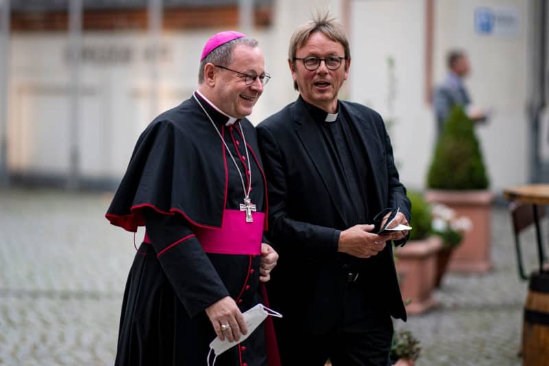 Le président de la Conférence épiscopale allemande Georg Batzing (C) prend la parole lors de la réception annuelle St Michael 2021 de la Conférence épiscopale allemande. Fabian Sommer/dpa