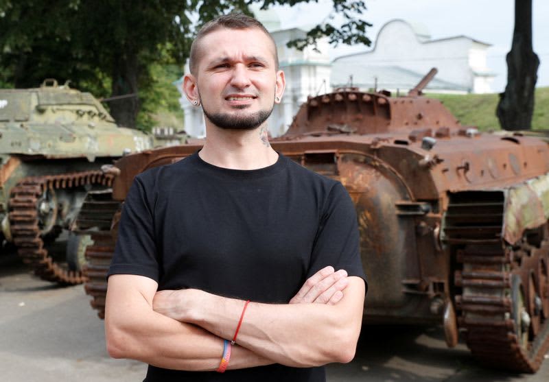 KYIV (Reuters) – Viktor Pylypenko est devenu un modèle pour des dizaines d’anciens combattants ukrainiens LGBT+ et leurs partisans depuis qu’il a organisé leur participation il y a deux ans à la plus grande marche de la fierté gaie de Kiev.