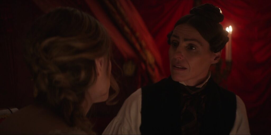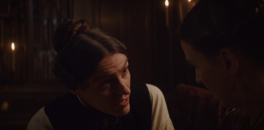 Il n’y a absolument aucun respect pour les sentiments authentiques de Marian pour M. Abbott, ni son désir d’avoir une famille et des enfants à elle – parce que Marian devrait simplement se contenter de la vie qu’elle a à Shibden Hall, n’est-ce pas ? Tout cela venant d’Anne elle-même, qui n’a jamais choisi de se contenter de la vie qui lui a été confiée et a toujours forcé la vie qu’elle voulait elle-même vivre. Anne Lister, qui ne s’est jamais contentée de ne pas avoir de femme avec qui passer sa vie, est ici en train de dire à sa sœur d’être heureuse seule. Et Anne dit ces mots à la même sœur qui a de tout cœur accepté et embrassé l’homosexualité de sa sœur, sa relation radicale et sa situation de vie. Je suis désolé, mais qu’en est-il de la vraie baise?