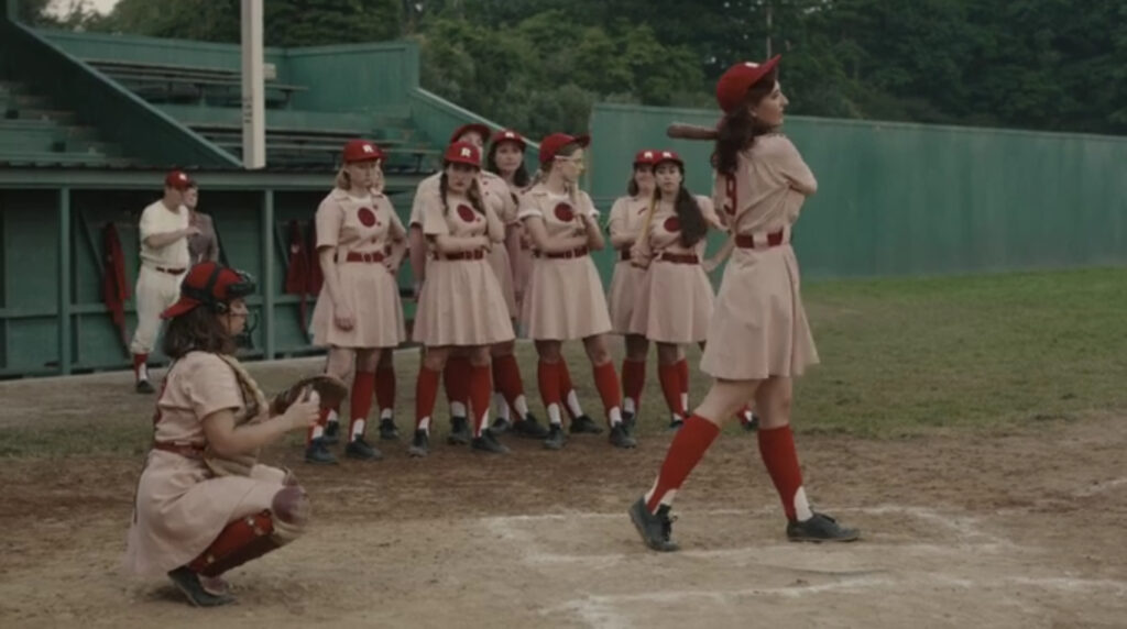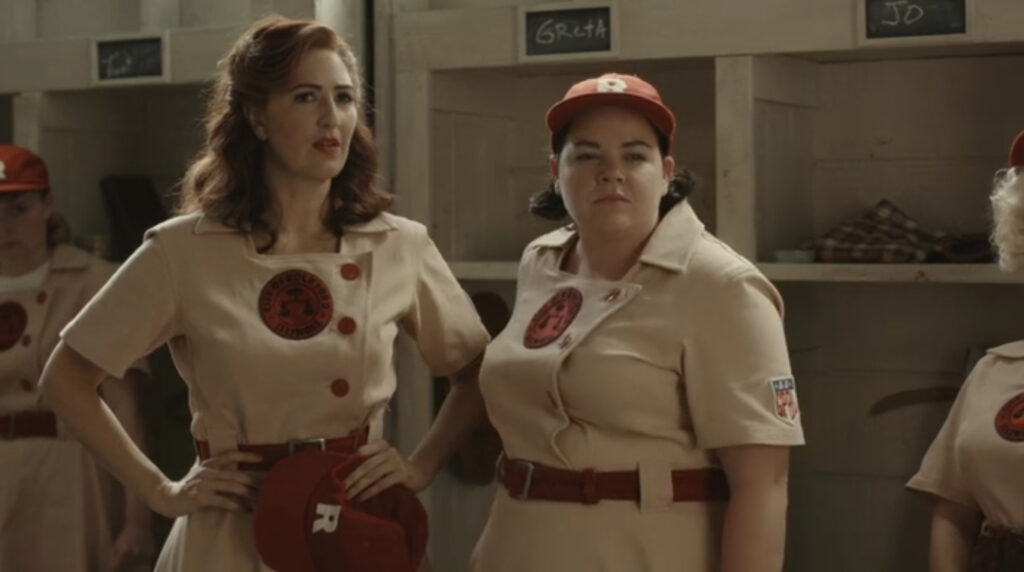 Le vestiaire est vide à l’exception de Greta et Carson en larmes. De manière implorante, Carson dit à Greta qu’elle a besoin que ce truc de baseball professionnel féminin soit « réel », pas la farce temporaire que leur entraîneur et même certains de ses coéquipiers ont prétendu que c’était. Greta apporte le discours d’encouragement avec: « Ils ne peuvent pas nous dire si c’est réel ou non, c’est nous. » Et, en ce moment, je ne sais pas si elle fait uniquement référence à la ligue de baseball ou si elle envoie également une note d’amour passive sérieuse à Carson.