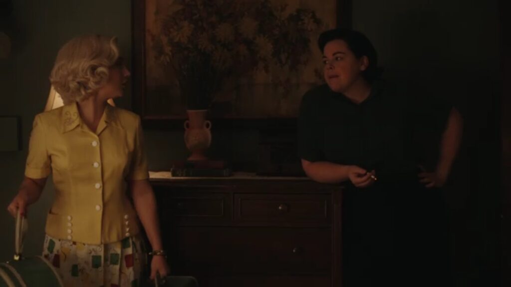 Le trio Jo, Greta et Carson fait tous partie de la même équipe : les Rockford Peaches. Encore une fois, le besoin de nous enfoncer GAY dans la gorge devient brûlant avec le commentaire de Greta, « Nous sommes tous des putains de fruits! » Nous comprenons – c’est la version gay de A League of Their Own. J’ai l’impression que c’est ce que ça va être à partir de maintenant.