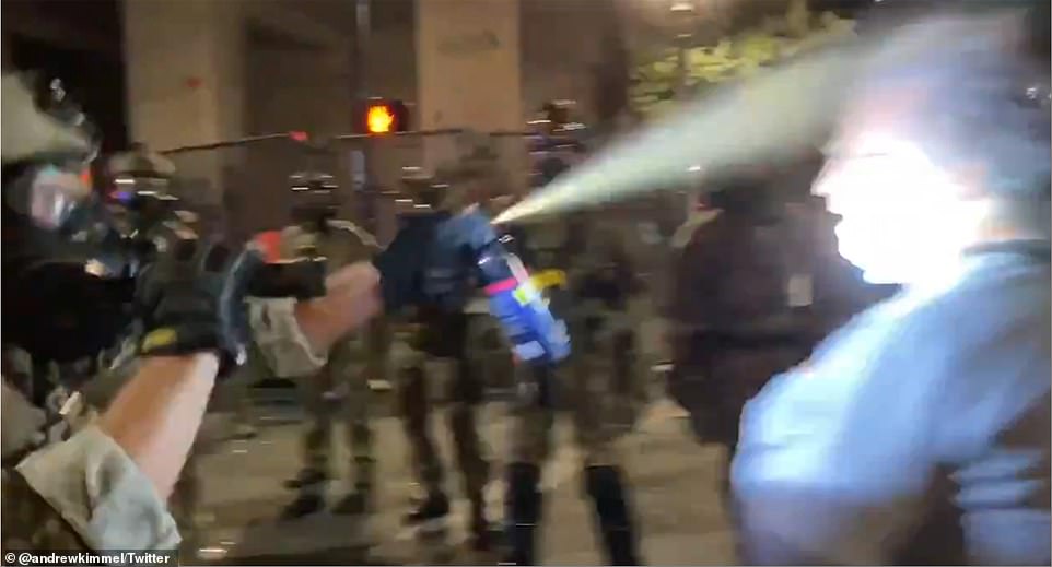 Des agents fédéraux en tenue anti-émeute ont pulvérisé au poivre un vétéran du Vietnam et photojournaliste lors de manifestations à Portland, Oregon, tôt dimanche matin.