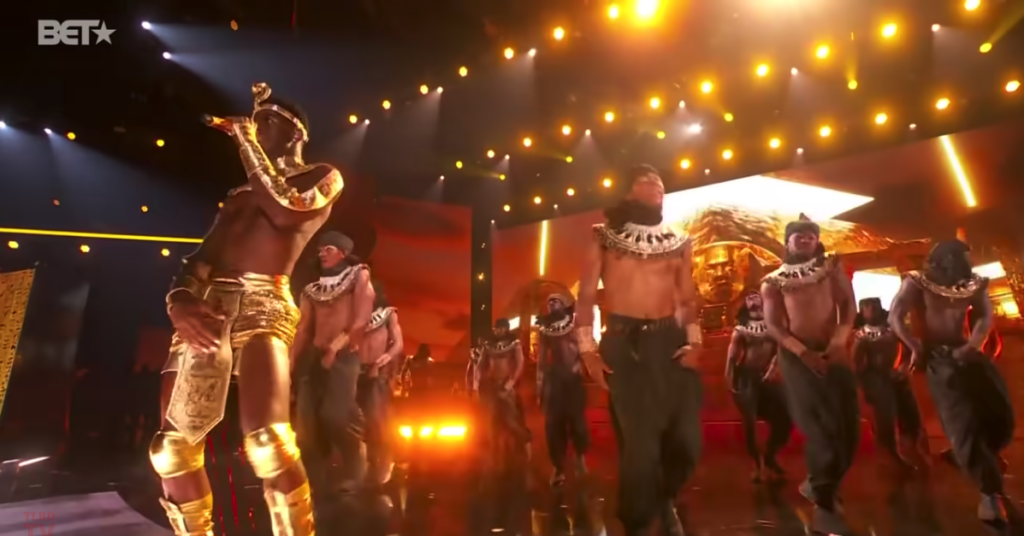 Lil Nas X expose tout sur scène pour une interprétation royale inspirée de « Remember The Time » de Michael Jackson pour interpréter sa chanson à succès « Montero (Call Me By Your Name) » aux BET Awards 2021. #CulturesBigestNight #BETAwards