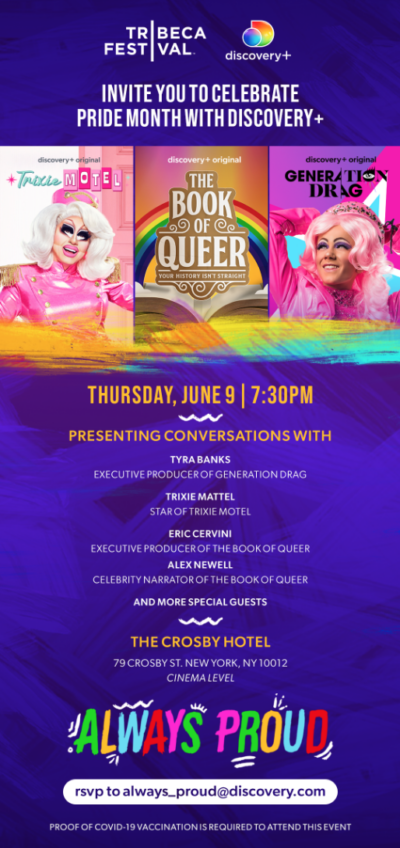 Si vous êtes à New York, Discovery +, streamer pour l’homonyme Discovery du mastodonte de contenu nouvellement formé Warner Bros Discovery s’entretient avec le Tribeca Festival en conversation à l’hôtel Crosby avec Tyra Banks, Trixie Mattel et Eric Cervini, producteurs de leurs nouveaux originaux Discovery + Glissement de génération, Trixie Motel et Le livre de l’homosexualité.